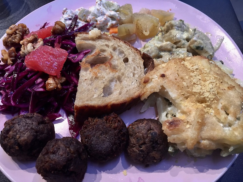 I går var jag och åt veganskt julbord med Lilian, min kära väninna och till lika ”mat-buddy”. Det blev rödkålssallad, två olika auberginsillar, nötbullar och vegansk Jansons frestelse. Allt supergott så klart.